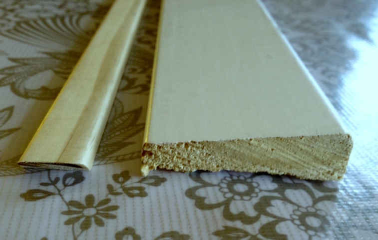 Right: heavier trim piece used for a chair rail. This piece was pre-primed.