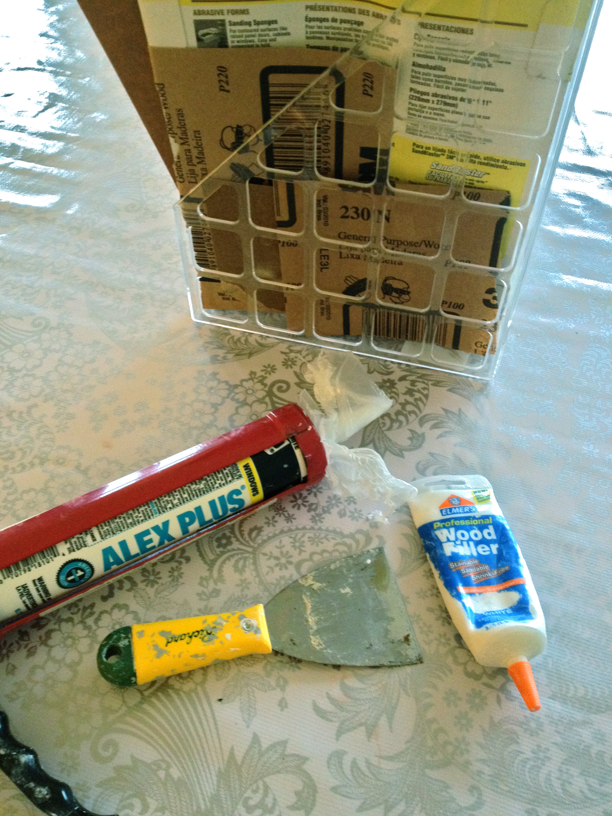 2) caulk and caulk gun. You can get ones that you squeeze by hand, too, so the gun is not necessary. Any kind that is paintable is fine.