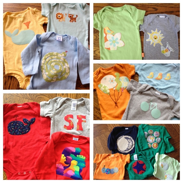 Finish the onesies by sewing around the appliques with a zig-zag or straight stitch. I used a zig-zag for the simple shapes, as I think this will be the most secure.