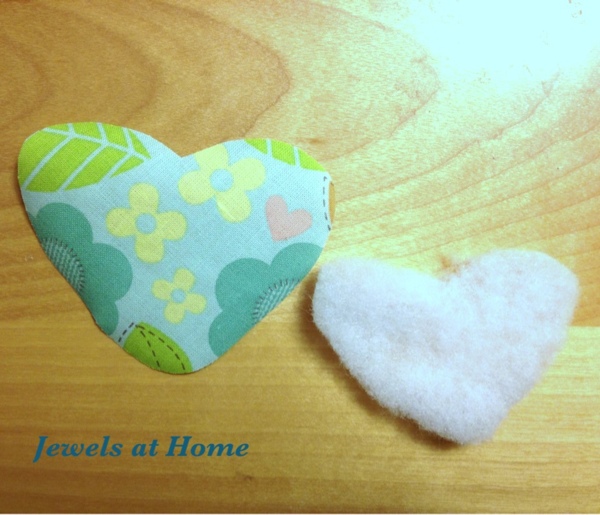 Following the instructions detailed for the tie t-shirts and onesie decorating party, create a large shape with the fusible applique material on the back and cut the small shape out of batting. The batting will flatten out when you iron it down, so use enough to make it a little thicker than you want your finished shape.