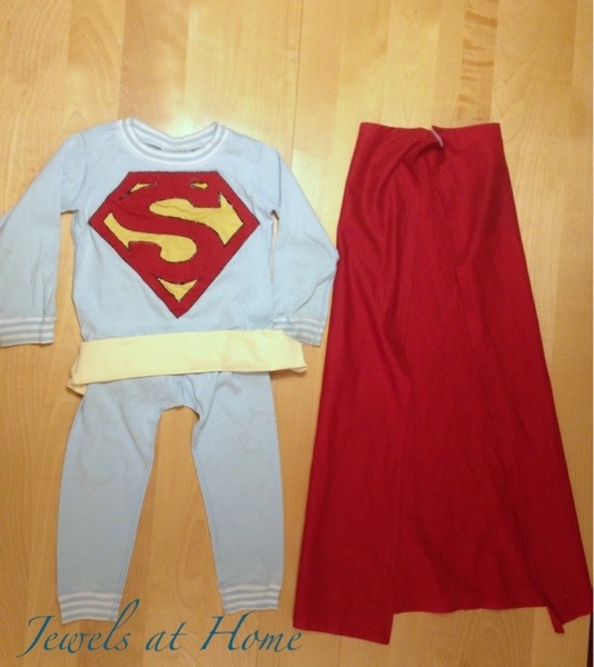 I actually made this Superman costume back when our oldest was three, so it has seen a lot of use, and it’s still going strong. It’s made from a set of plain blue pajamas, and I added the Superman logo and made a cape. This year, I added a yellow belt, too. The pajamas have gotten lots of wear, outside of Halloween, but they’re ready for saving the world a few more times.