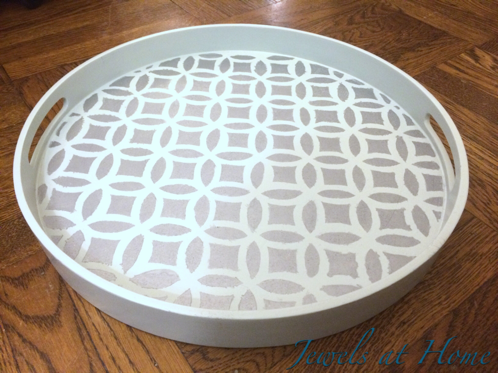 I love the pattern and silver glow, which I thought would be perfect for an old round tray I had lying around. My original tray was from Target, and while I love the shape and the pattern of the bamboo, it had nicks and scratches in the finish, and the color doesn’t work with our current living room.