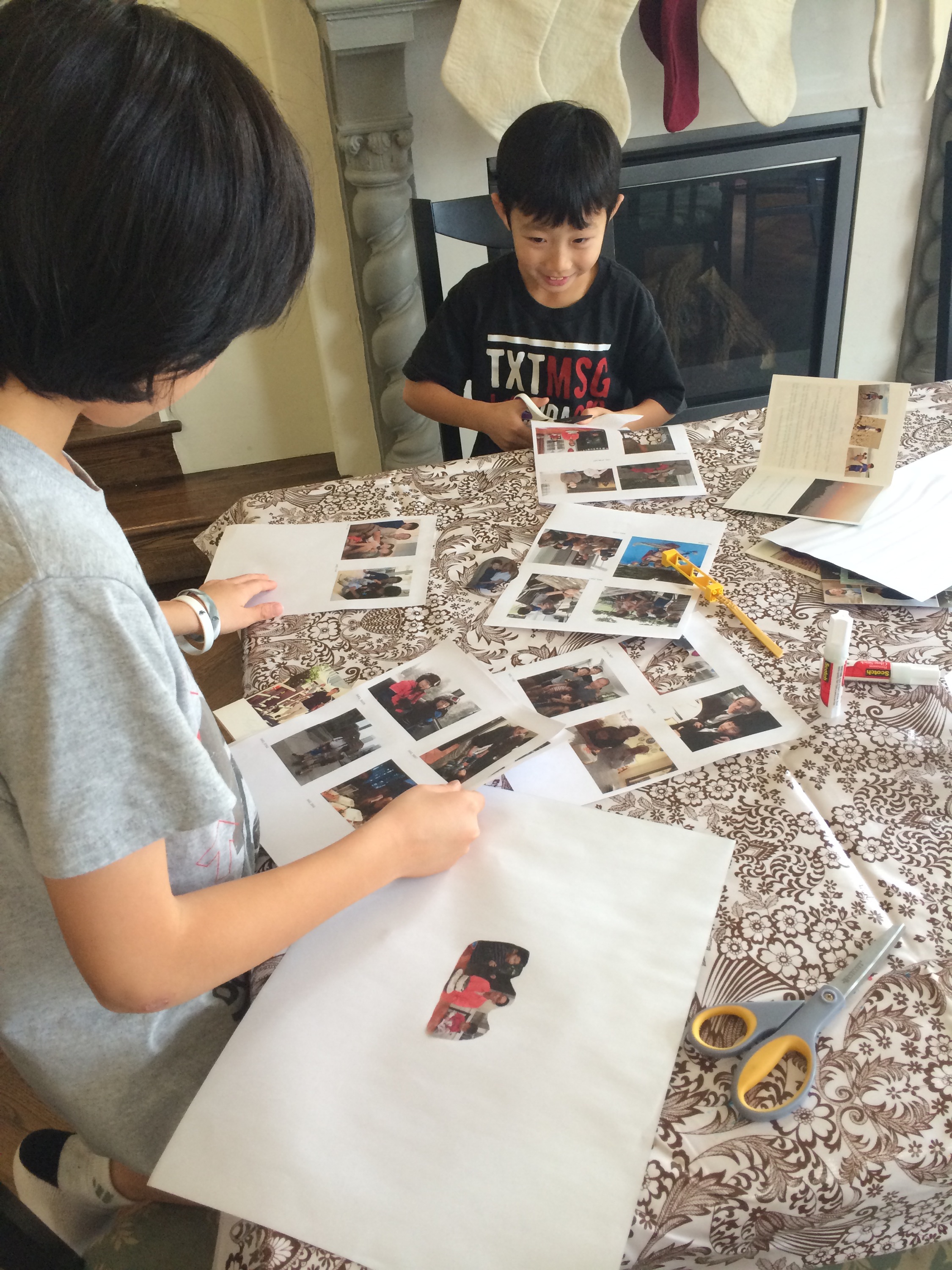 We reprised the mugs that we made for Steve’s birthday and Father’s Day last year, and the boys also made these fun picture collages. We enjoyed going through old pictures to find our favorites, and I also added some extra copies of Christmas cards from the last few years. The boys did all the cutting and gluing themselves, as evidenced by the fact that there are duplicates right next to each other and other quirky touches. I think that our family is going to love these!