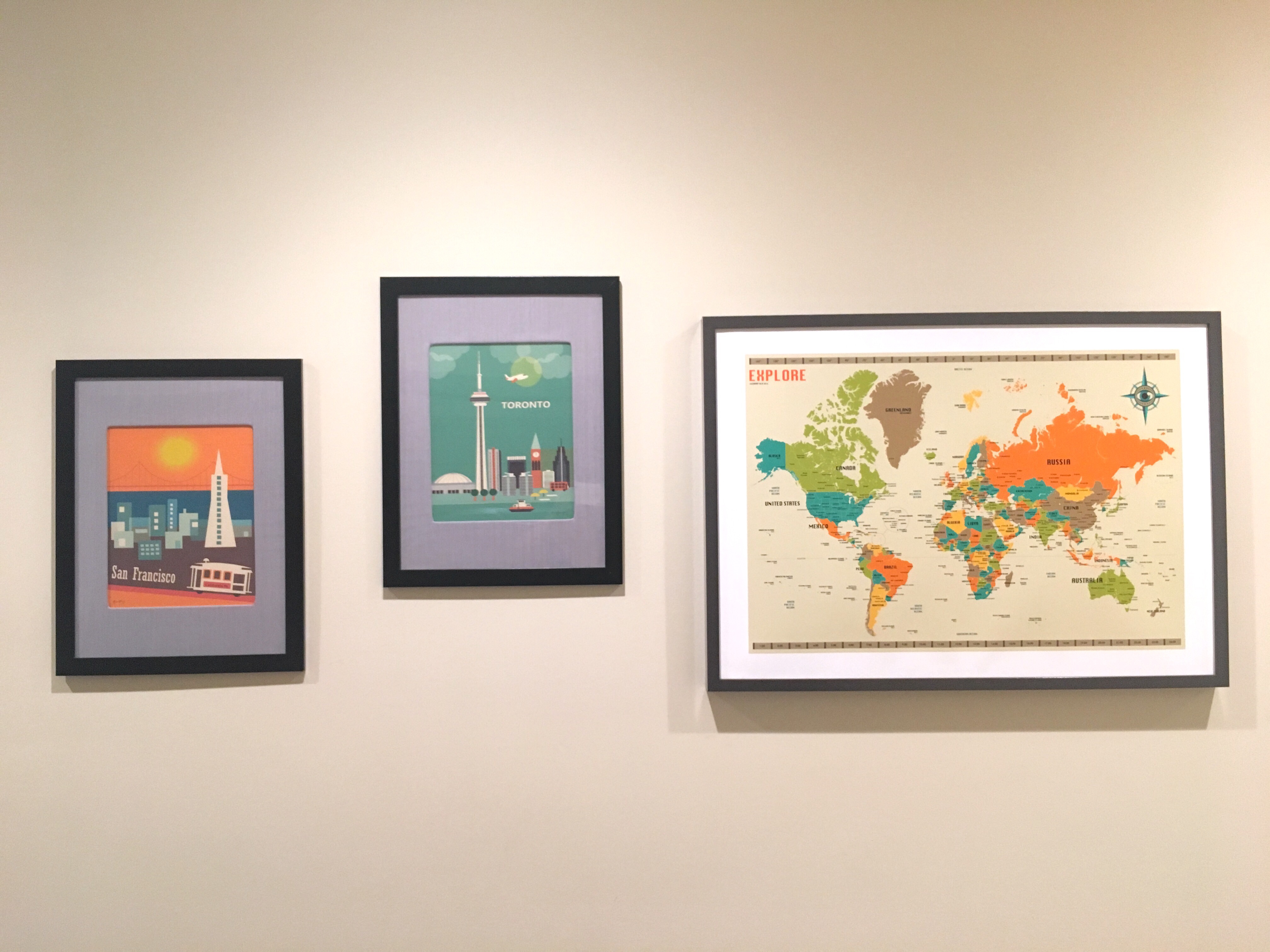 I added some travel themed art that had been up in the boys’ room before they switched over to superheroes. Finally, I love this oversized map where all of our guests can mark their hometowns.