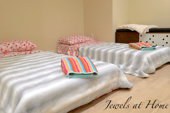 When we finished our basement, we built in a small and cozy guestroom. When my sister planned a visit, I was motivated to finally finish decorating it. Luckily, I have a very understanding, sister – see?