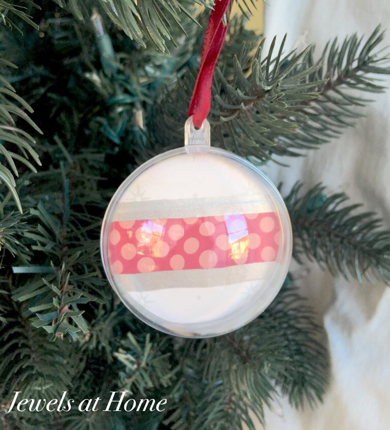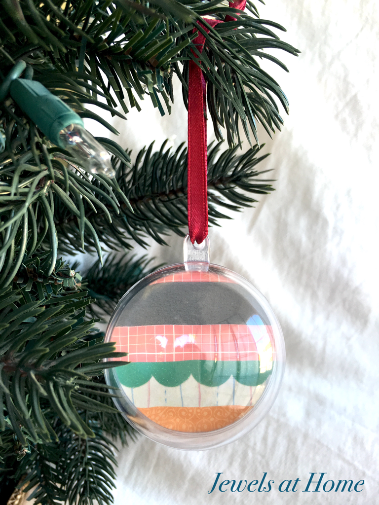 My passion for pretty papers goes way back, but I confess that when washi tape first became popular, I didn’t immediately fall in love – it’s not too late, though! I had so much fun combining patterns and colors to make these pretty ornaments. These lovely decorations are quick to make, and I will be bringing this project to work for our holiday party. I also made a personalized version of these ornaments with kids’ names inside.