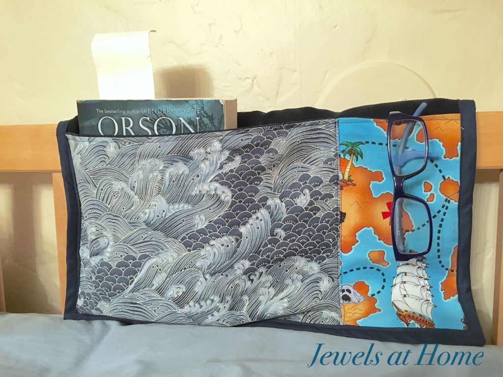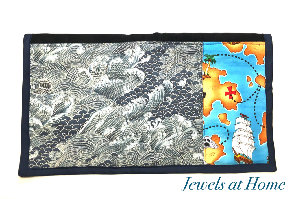 I let him pick some favorite fabrics out of the stash, and I like how the pretty Japanese-inspired ocean print complements a whimsical pirate print from his younger days.