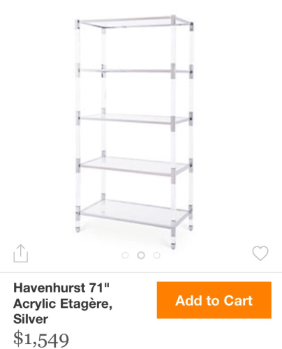 Havenhurst Etagere. More clean lines and metallic touches. I guess I know what I like this mix of campaign touches on a modern acrylic etagere really set my heart aflutter!