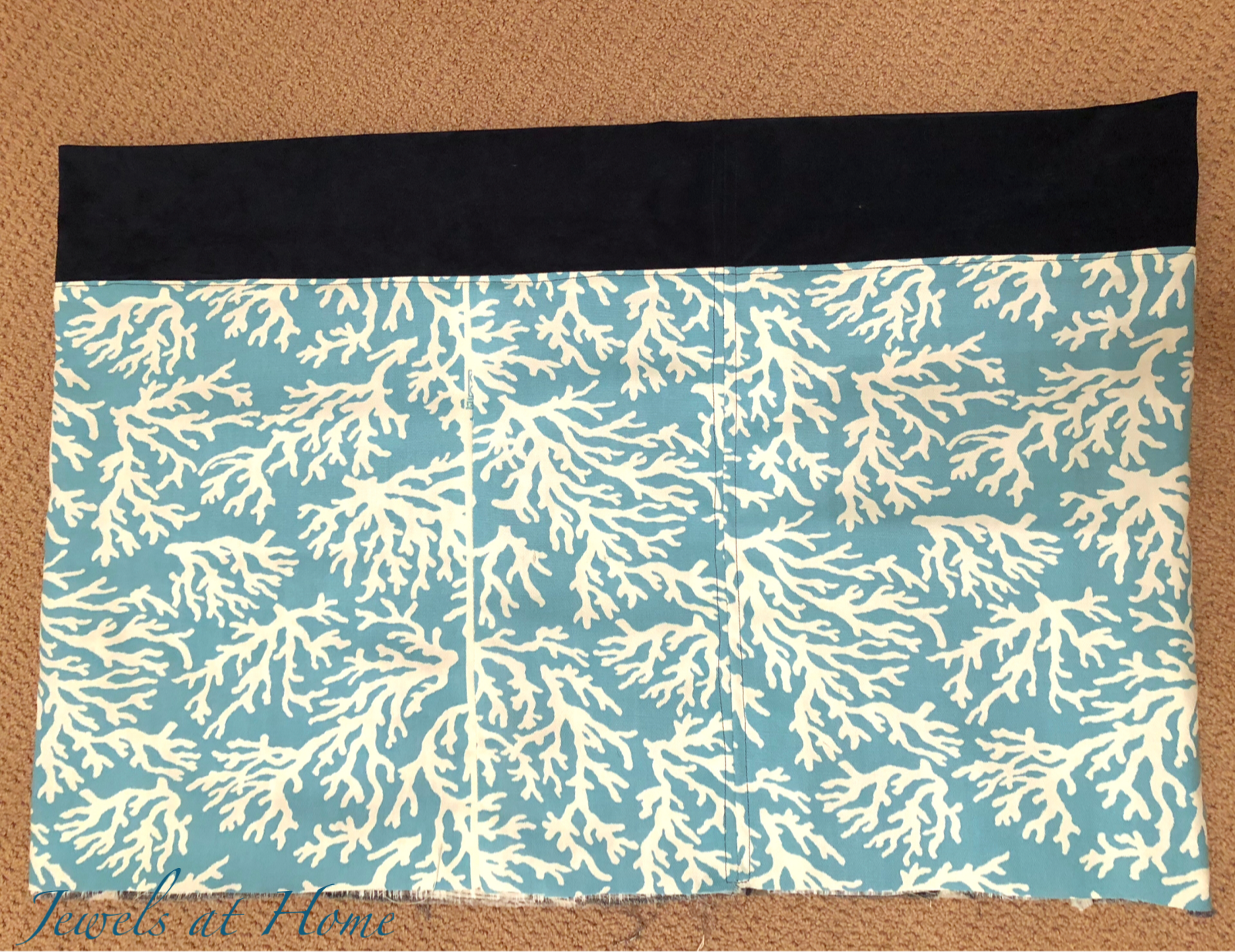 - Fabric – main, border, and liner. I used faux suede for the border and outdoor fabric for the liner, since I thought they would hold up better to moisture and splashes.