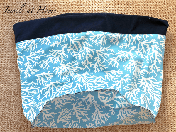 - Sew the bottom onto the raw edge of the tube, with right sides together. Zig-zag the raw edge to keep it from fraying. This is what the inside of the bag looks like when finished: