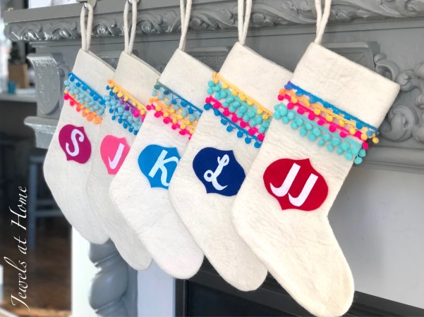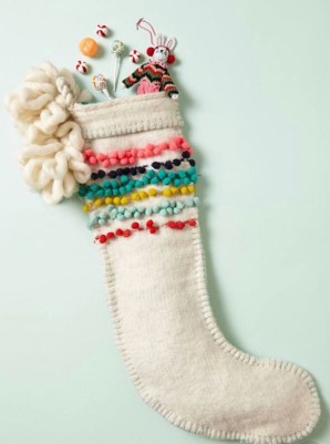 I got the idea for these pom-pom trim stockings from Anthropologie, but they are no longer available there: