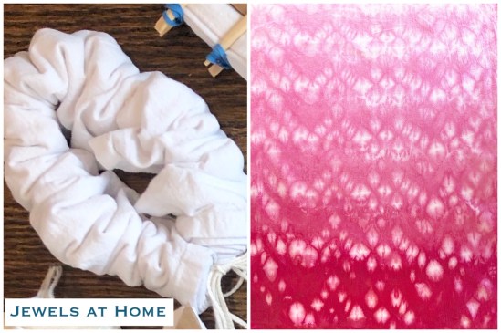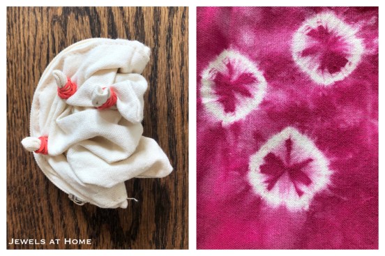 I gathered up sections of fabric and secured it with rubber bands. I’ve also seen this done with multiple concentric circles.