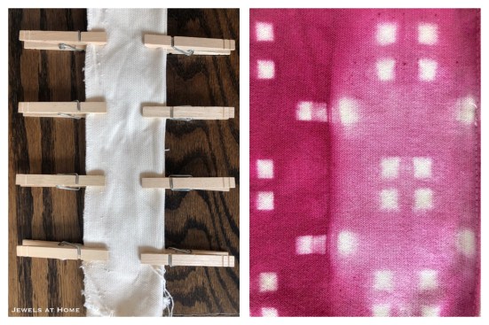 Accordion-fold your fabric and then place clothespins along both edges.