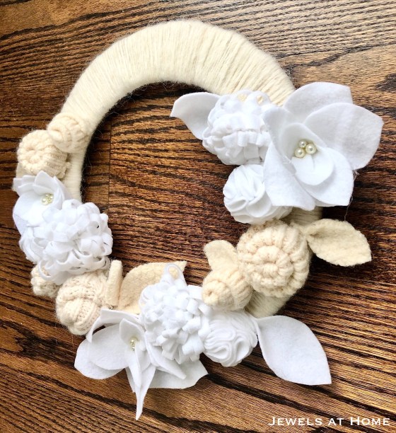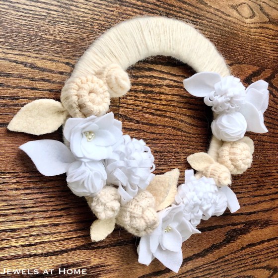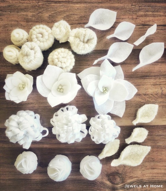 Here’s a picture of the different flowers and leaves I made for my wreath: