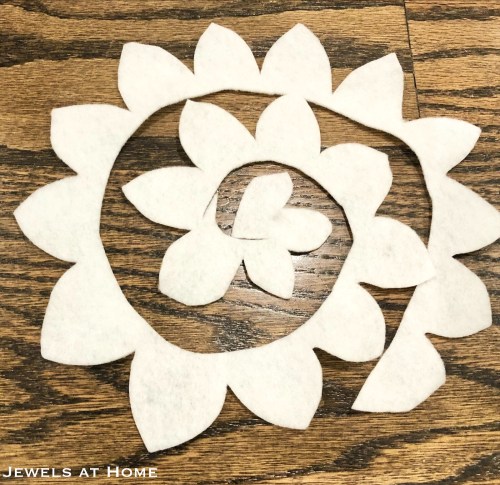 This is what the poinsettia flowers look like, before you roll and sew them: