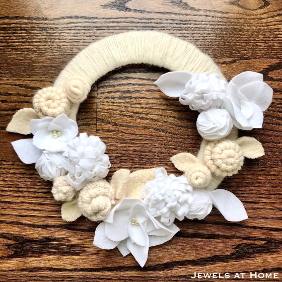 I’m here to share my latest project and also ask for your help! Here’s a felt wreath I made for Christmas decorating, and I really, really love it – but I don’t know where to display it, especially since it gets a bit lost on our cream walls and white trim. Suggestions welcome!