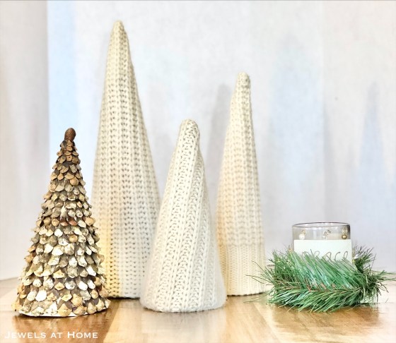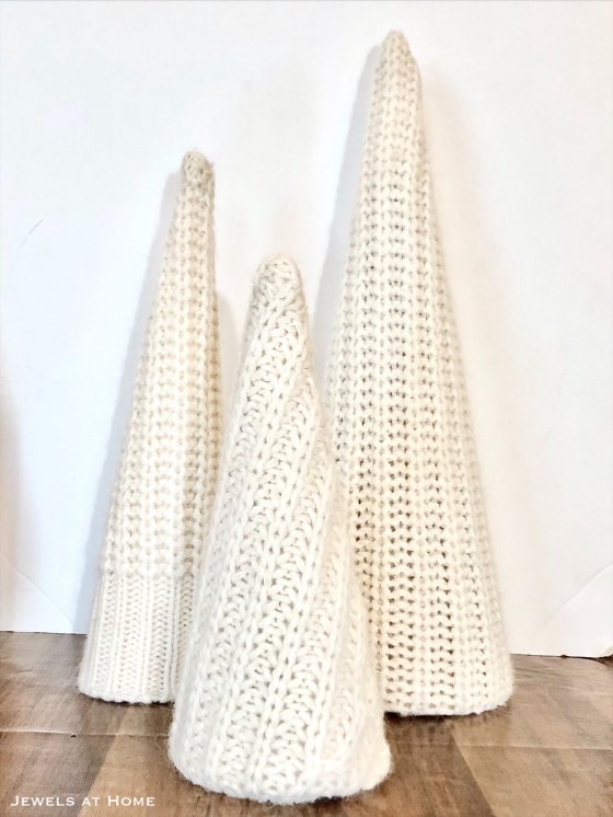 Here are the trees made from the thrift store sweaters (also the pine cone tree from a few years ago!):