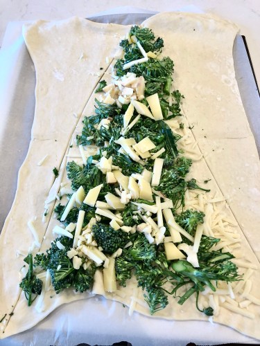Lay the pieces of pastry over the cheese and broccolini to to create the top layer of the pastry