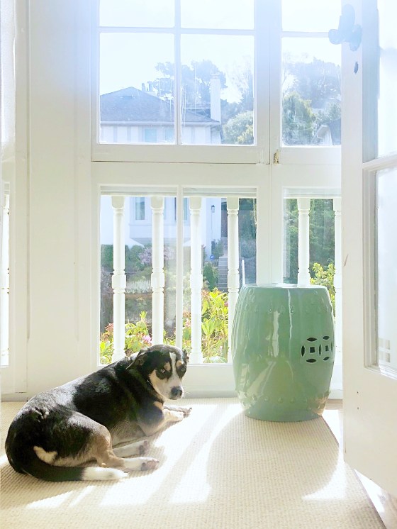 I’m using our little sunroom as my home office while I work from home during the pandemic. I loved how light and airy it was when I first decorated it last summer. Now that I’m working from this space, I’ve had to add some more furniture and some window coverings – all those windows create a serious greenhouse effect, not to mention some tricky lighting for all the video calls. While a lot of what I added is functional, I still want this to be a beautiful space, and at only 5′ x 15′, I need to keep it pretty curated.