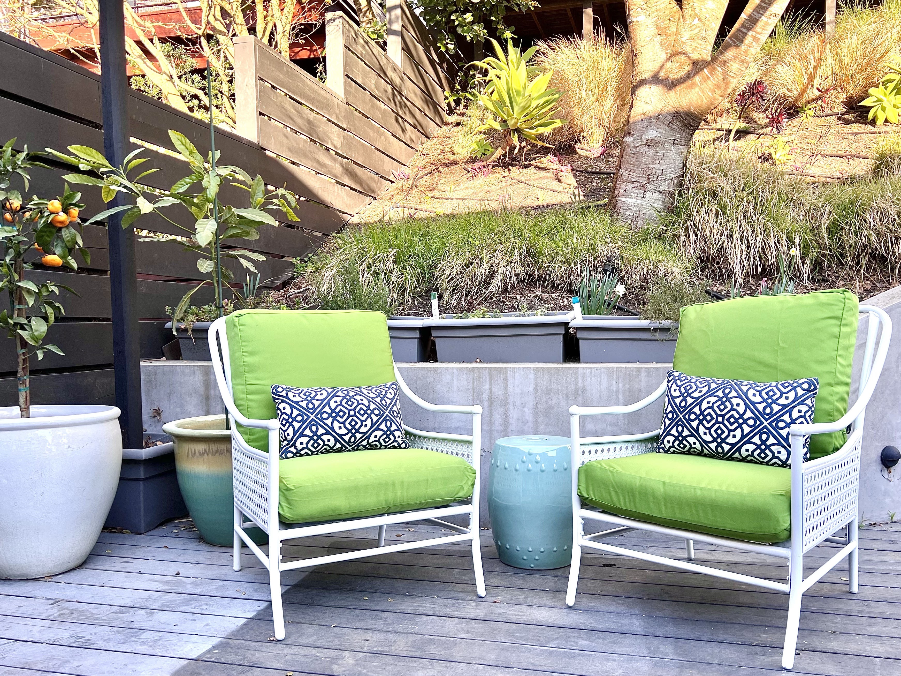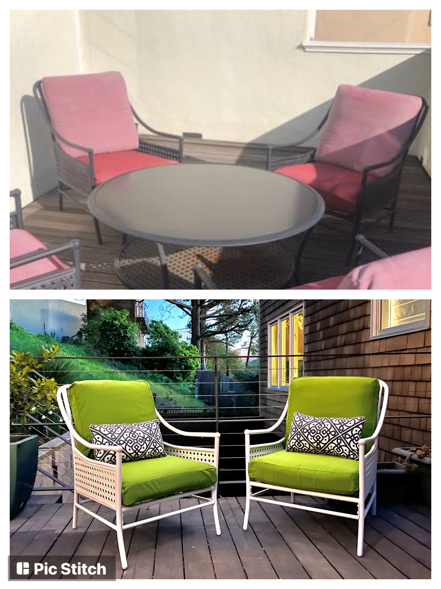 I am so excited for our new patio space and have already enjoyed time out here eating lunch, reading, or catching up on some work. I started looking for some lounge chairs, but I couldn’t quite find what I wanted – or more accurately, what I wanted was way too $$$. But this story has an happy ending! I found these used chairs and made them over for $ to complete our patio space!