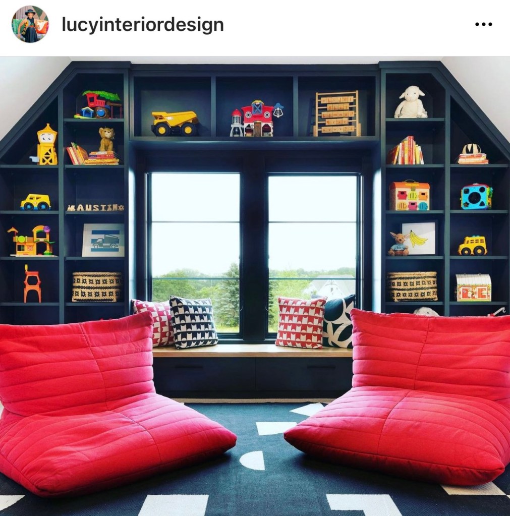 I love these dark built-ins to ground all the color from the toys. Thinking of something like this for J’s room!