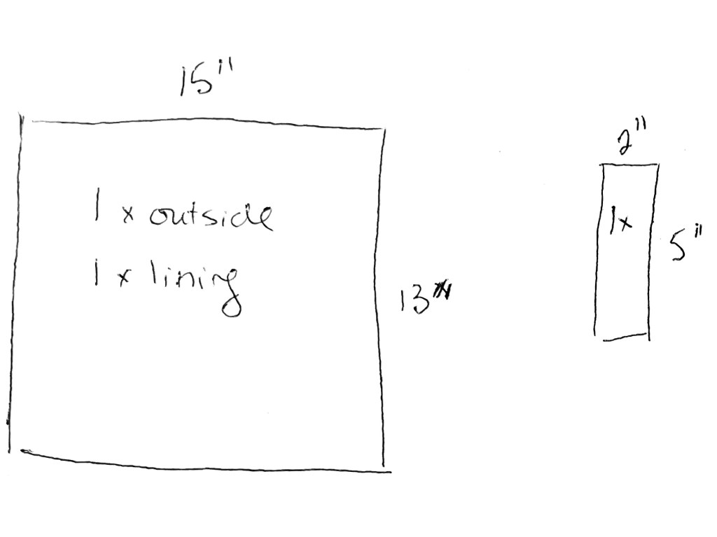 - fabric for the outside – 15″x13″ plus a 2″x5″ strip – this is a great fat quarter project