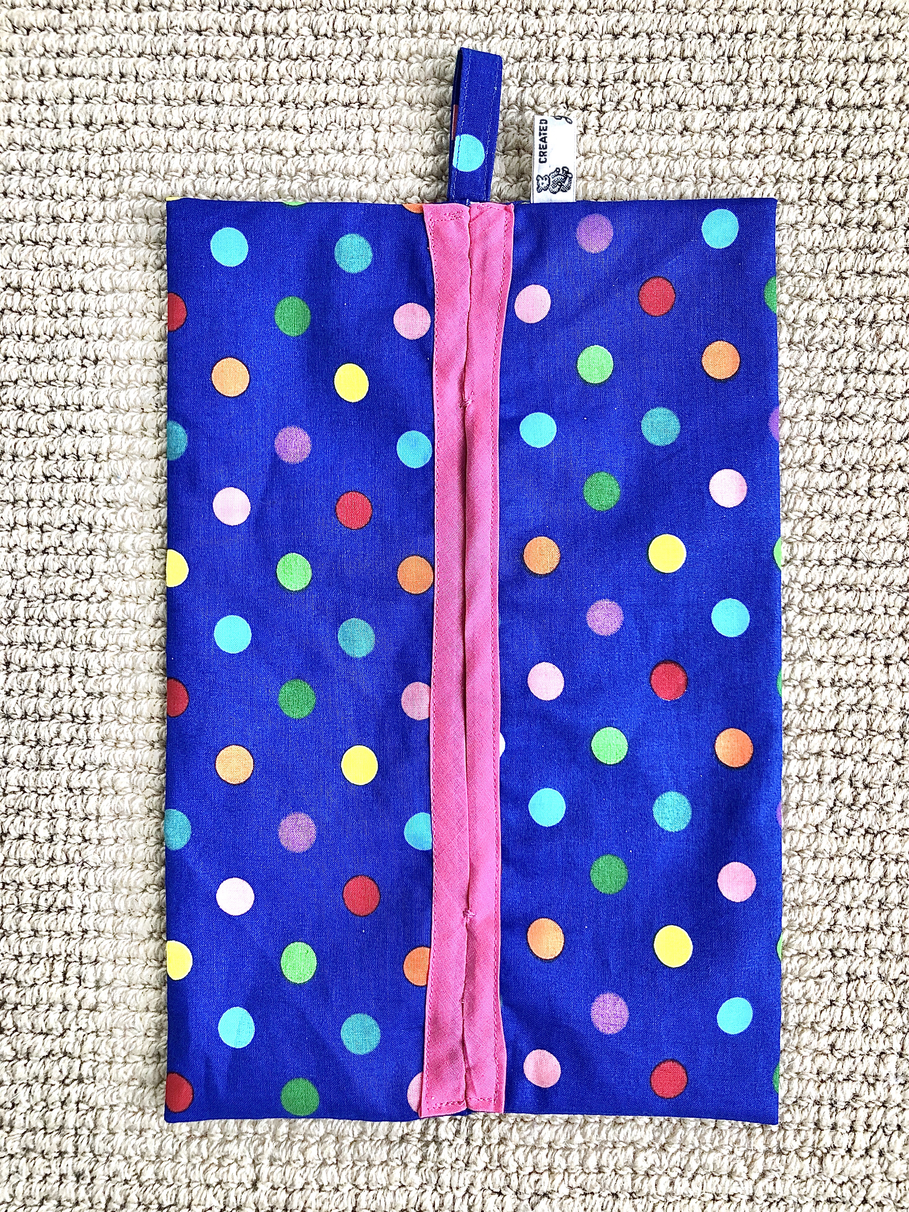 After I gave this to my friend, her daughter liked it so much she took it! So I made a second one for her! She originally chose the polka dots, but the second one is made from a vintage kimono I upcycled.