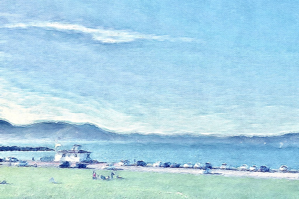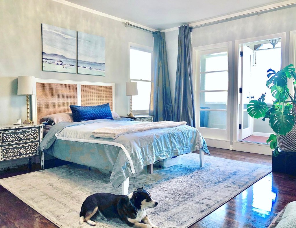 We spent last year in a rental house near the water. For the artwork over our bed, I chose a photograph that I took in the neighborhood, so we could keep it as a reminder of that beautiful location. After I picked my photo, I used an iOS app called Brushstroke, which creates the impression of a painting and then printed the image across two canvases to make an oversized piece of art.