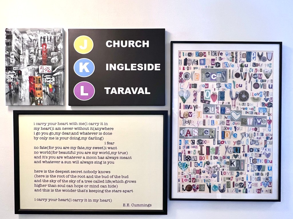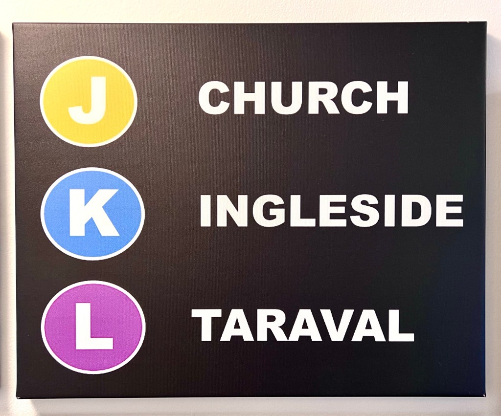 I love transportation signs as art – it’s modern but can be so personal when you choose something from a place that has meaning for you. Our boys’ names start with J, K, and L, which are three of the San Francisco Muni train lines. I used PowerPoint to create this canvas that is inspired by Muni signs.