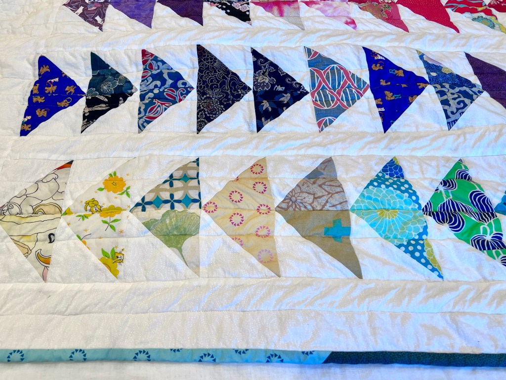 If you look closely, you’ll see many special fabrics – DNA for my fellow genetic counselors, shibori that I dyed myself, and fabrics from my mom’s collection, including the fabric from my own baby blanket (the yellow tigers!).