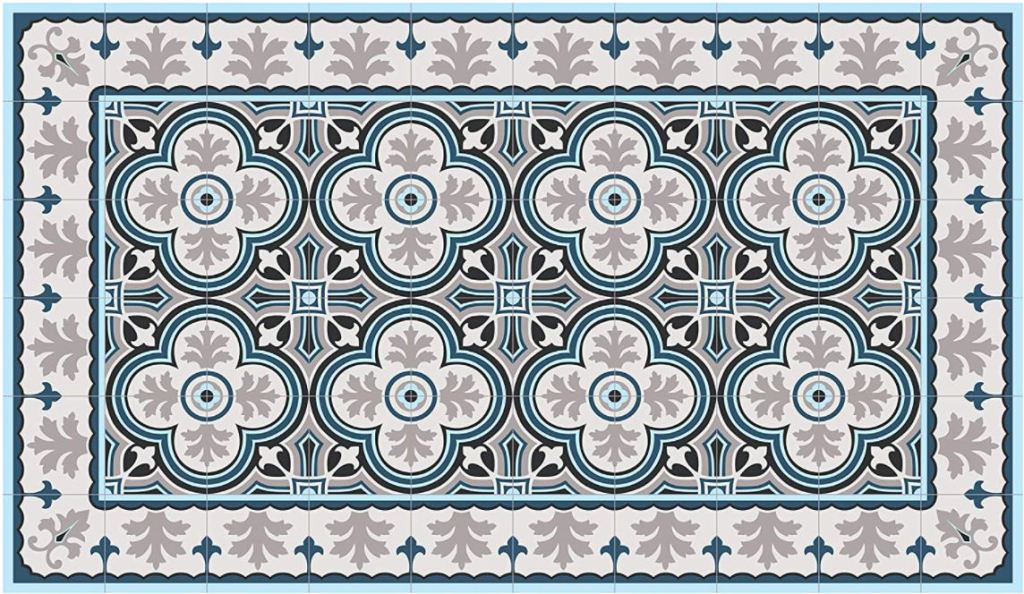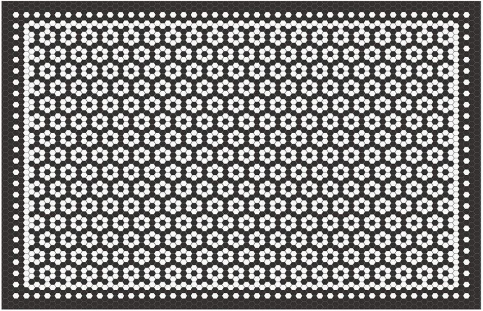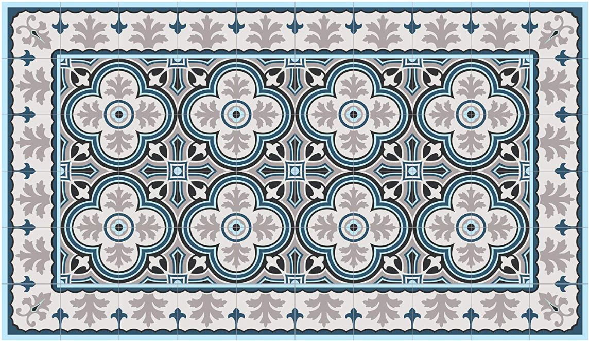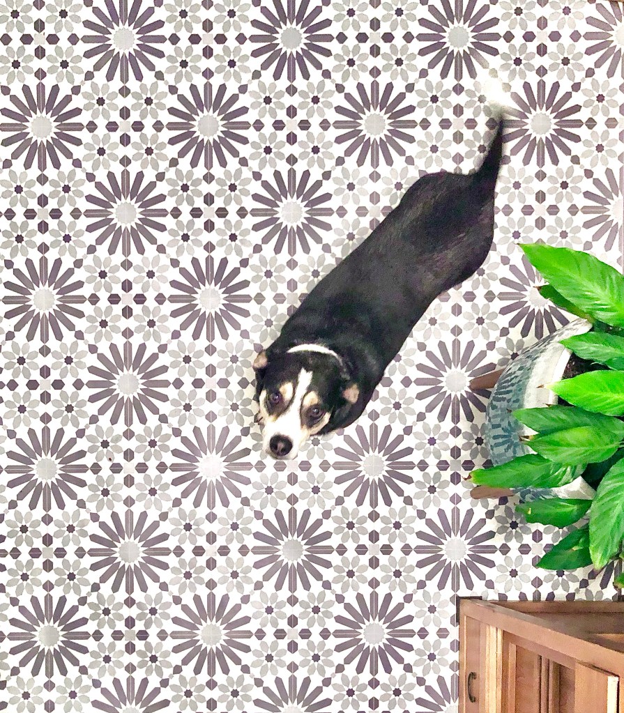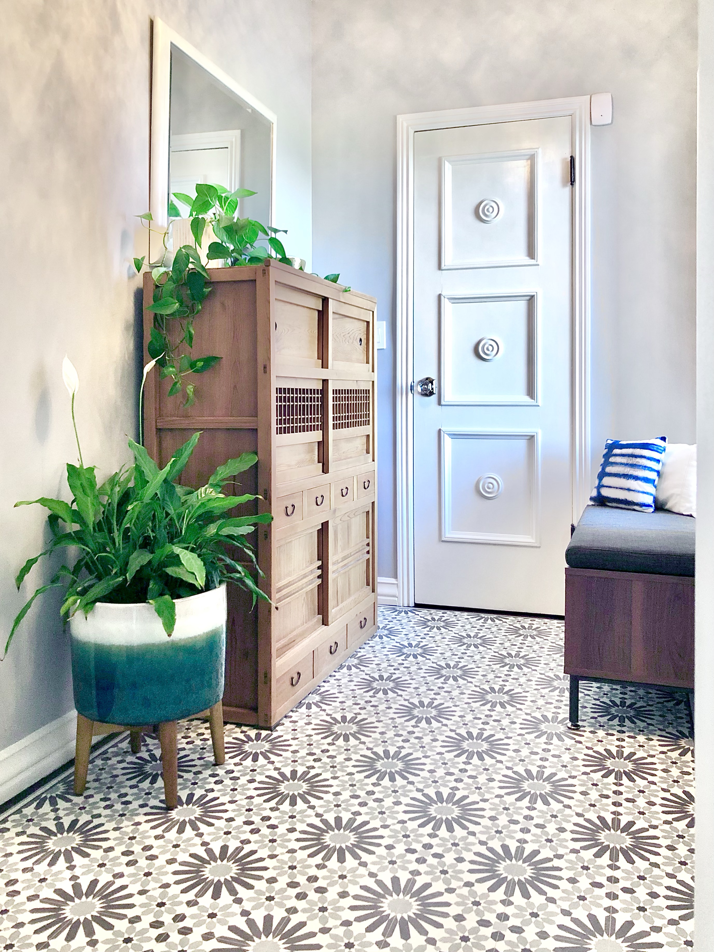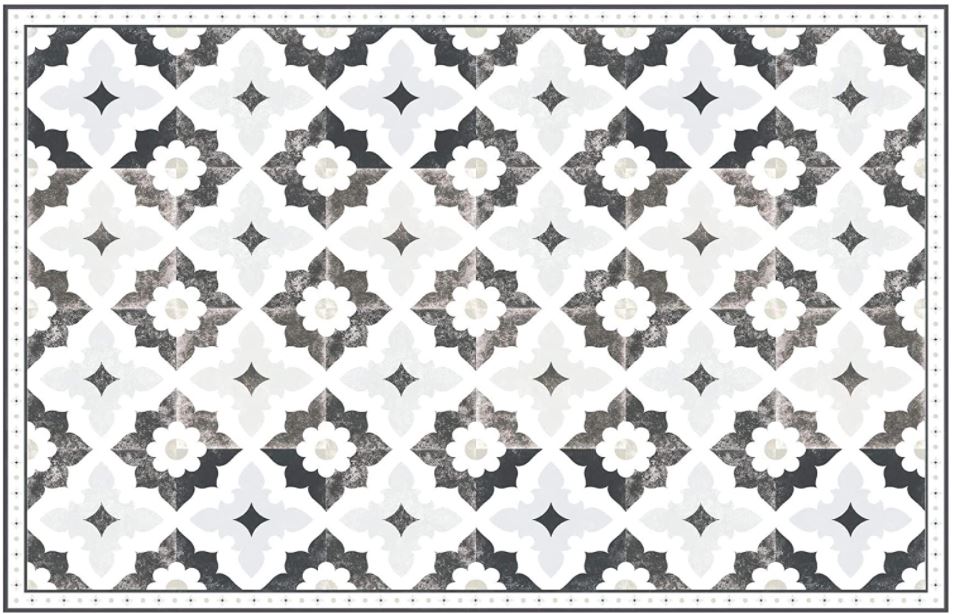 The flooring looks like tile or a carpet, but it’s actually a vinyl floor mat. I bought mine from ArtMatHome on Etsy, and I love their patterns and variety of sizes. This type of product is getting more and more popular, so there are many options available, and I’ll share some more of my favorite finds here!