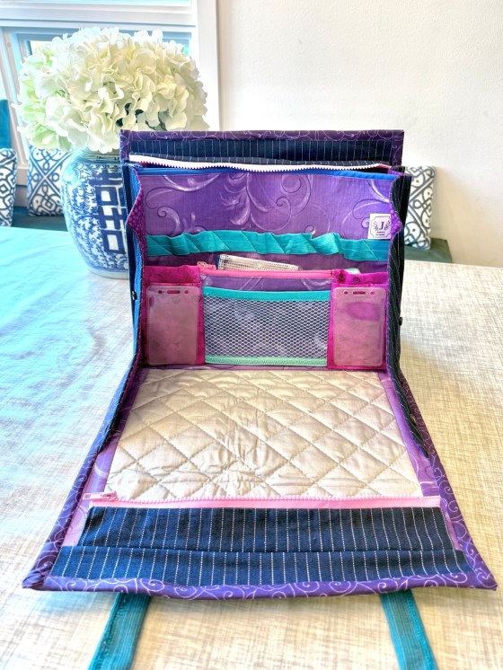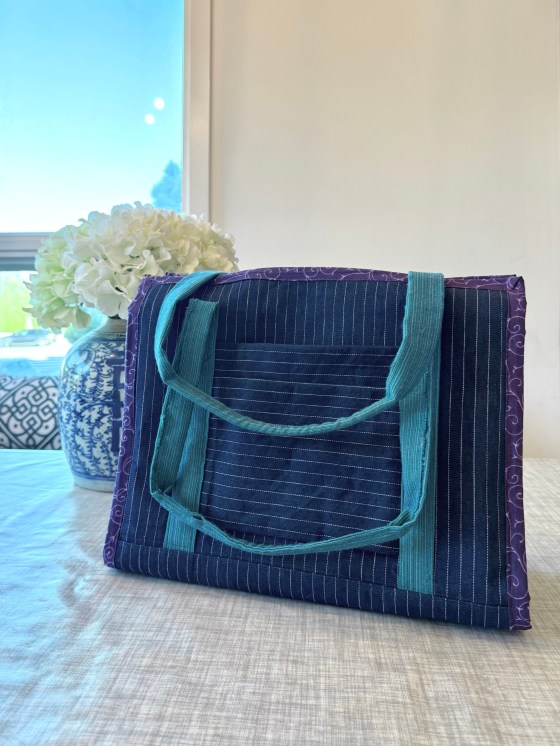 My two older boys went to college on the opposite side of the country. I missed them, but a silver lining has been the connections they built with our extended family. When we were gathered for my oldest’s graduation, I got a chance to catch up with my sister-in-law, a doctor, mother, and talented knitter! She mentioned an elaborate craft tote she had her eye on, the The Quiltess Ultimate Carry All Bag by Quiltessa Natalie. I wanted a way to show my appreciation for her welcoming my boys to her home for Thanksgivings, and I do love a sewing challenge, so I took on this project!