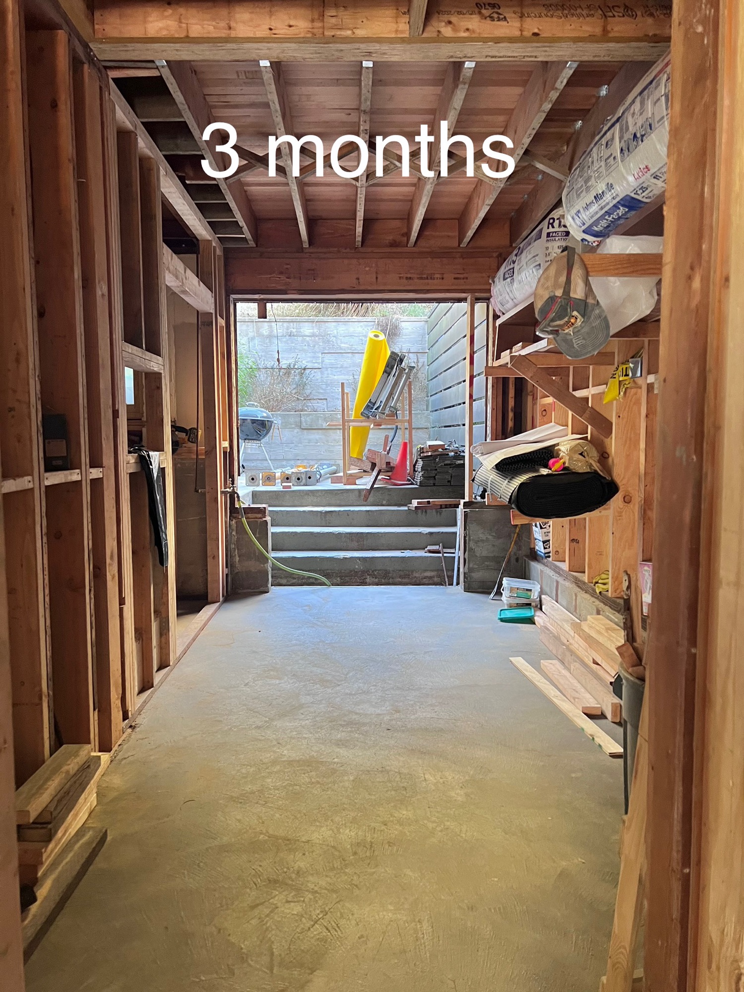 I can’t take credit for the construction work, but I will take credit for the inspiration – I very literally had dreams about finding space for just one more room in our house, to accommodate our family of five, with regular visits from my dad. After turning ideas around and around in my head, I figured out that we could enclose a little unused patio and reconfigure the adjacent rooms to make a new bedroom and bathroom. Some of us lived through the months of noise and dust, but you can just enjoy the pictures!