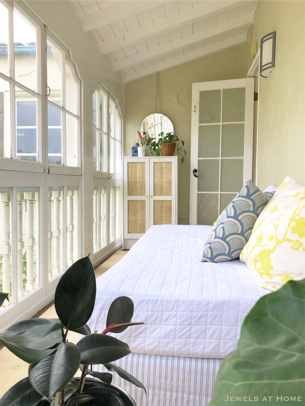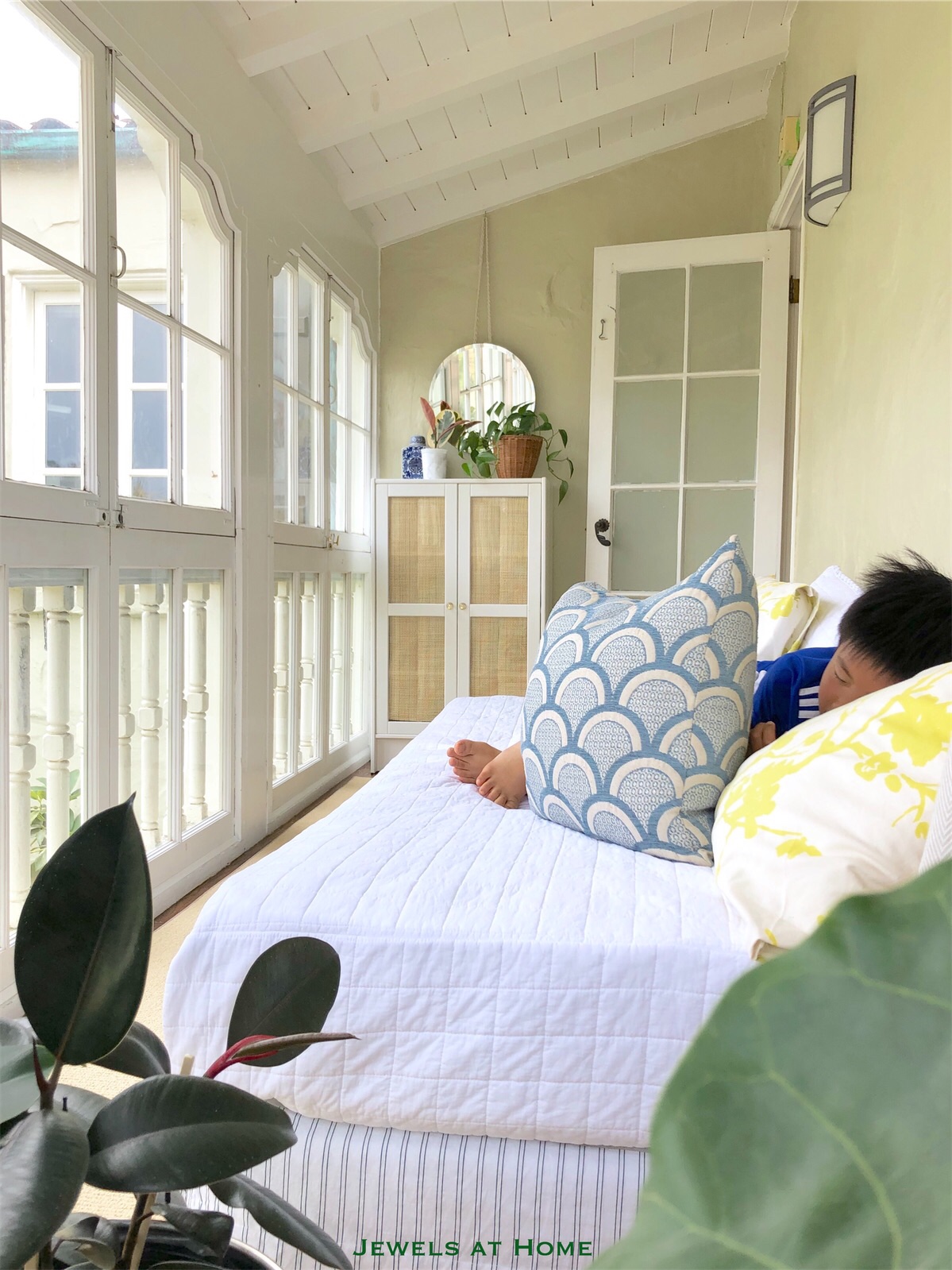 When we moved into our house, the small enclosed balcony became a place for LEGO, board games, and other toys. Now that the boys are older, I’m excited to reclaim this room as a more grown-up space for reading, lounging,… maybe even napping!