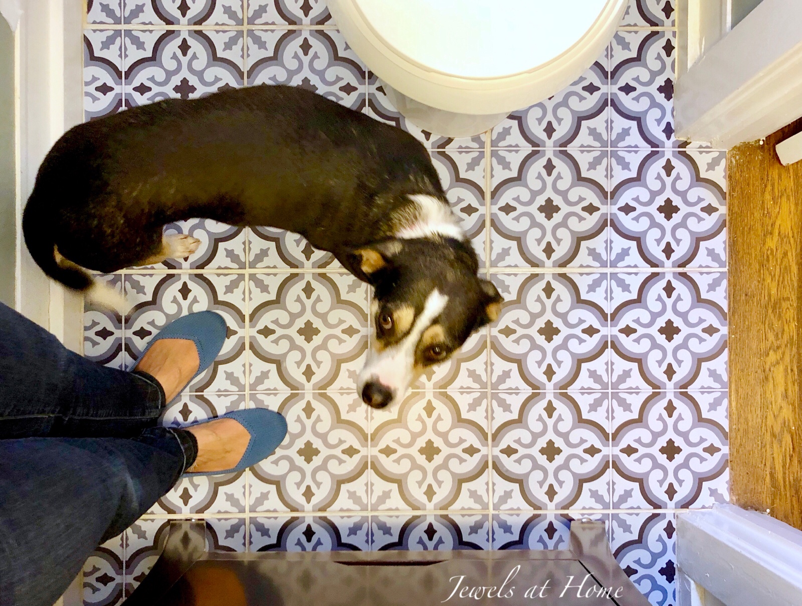 I’ll call this week to be the “telephone hold music” of the One Room Challenge – I am excited to share our new bathroom. I can take credit for the design, but not the construction. There’s also a small DIY project in there! In the meantime, I promise I am working away on other projects for decorating our new bedroom addition, including a custom daybed.