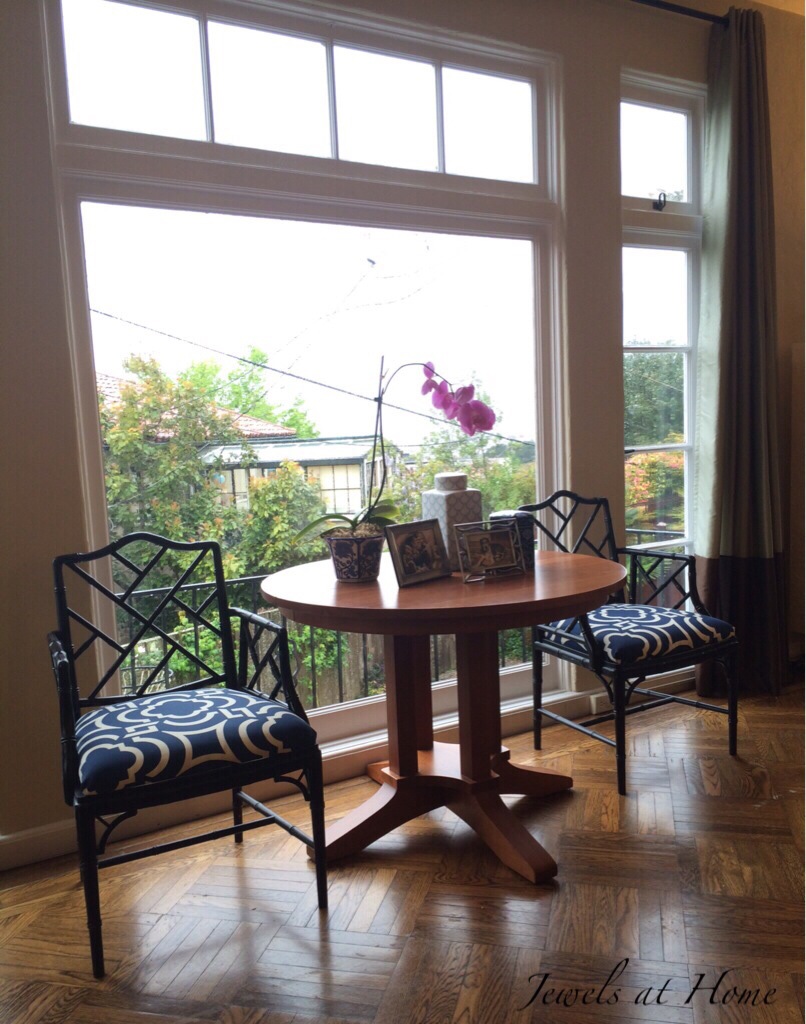 Table and chairs vignette in a sunny window | Jewels at Home