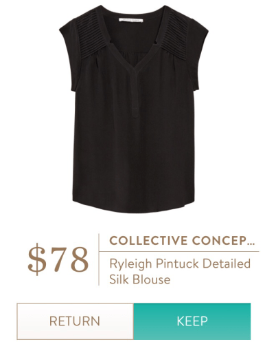5. Collective Concepts Ryleigh Pintuck Detailed Silk Blouse.This blouse was the sleeper hit of the fix. Kind of like the jeans from fix #2, which I thought were kind of boring when I first saw them and have become my absolute favorite jeans. This top looked pretty plain, but when I put it on, it fit perfectly and the little details around the collar and shoulders are so pretty. The cap sleeves look great, and I can see myself wearing this a lot!