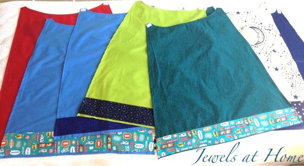 You can definitely adapt these instructions to make any superhero, including ones you dream up yourself. Look at the variety of capes for J’s party”