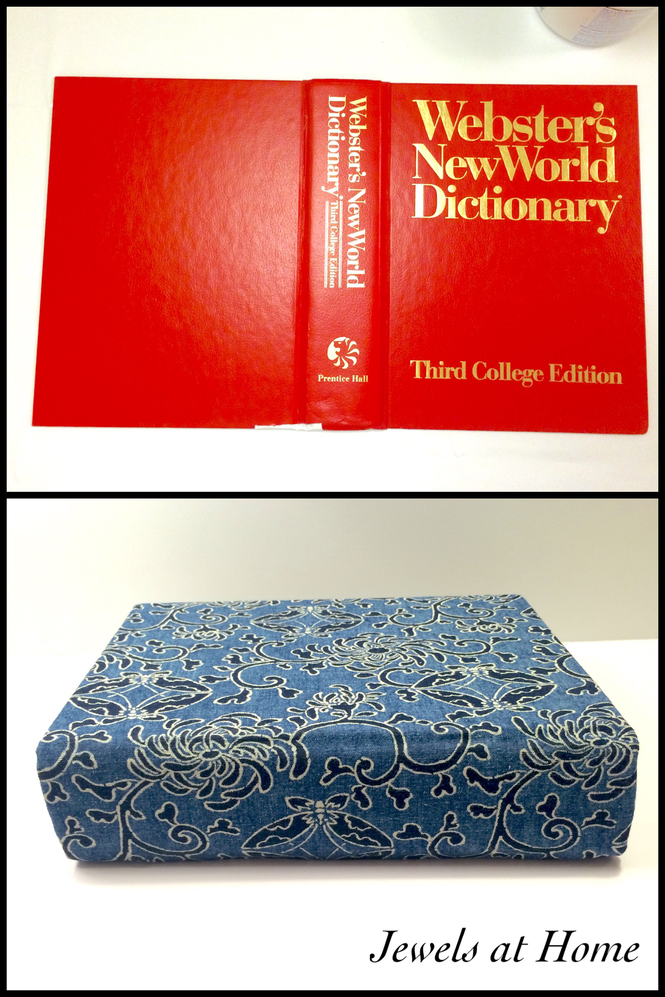 Next, I wrapped the book in fabric. In the past, I have used Mod Podge for decoupage, but this time, I tried Yes All-Purpose Stik Flat Glue