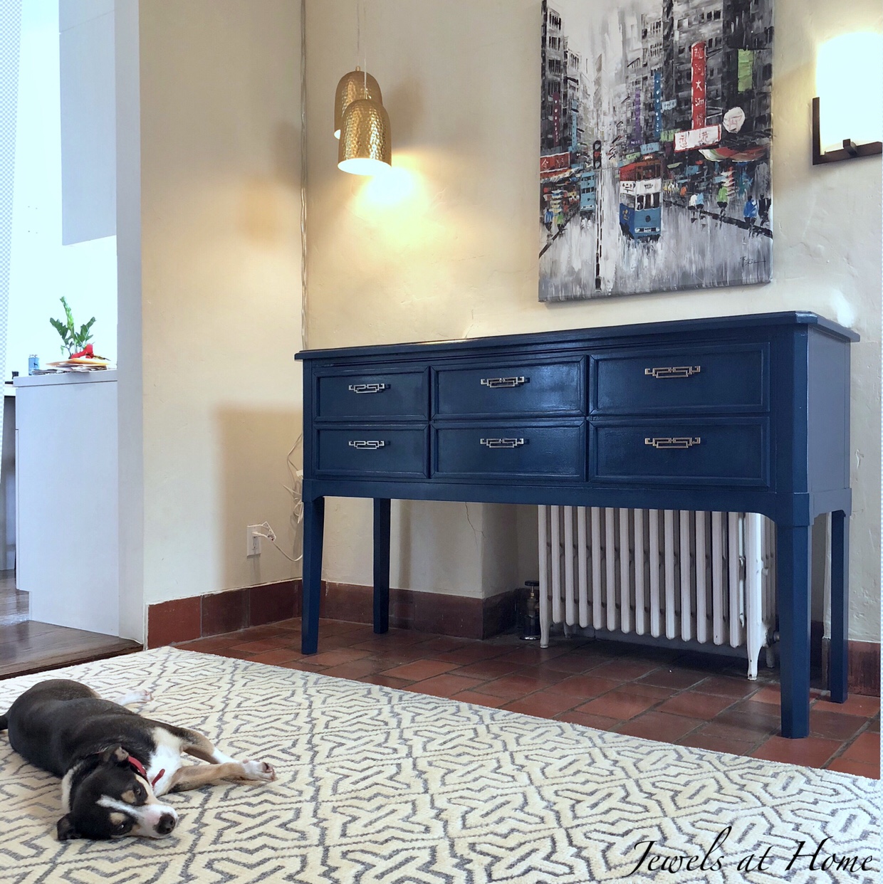 - Apply the spray lacquer – Amy Howard has some videos on YouTube with details on how to use this product. Overall, I really like it, but it is a bit finicky. Luckily, the little imperfections aren’t noticeable now that it is inside and decorated.