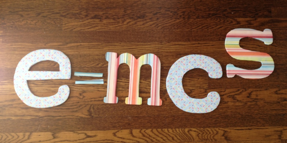 There are lots of great ideas for projects featuring artistic initials, and I want to try them all! I decided to start with a simple 3-dimensional cut-out initial wrapped in paper or fabric. Here’s how I did it!