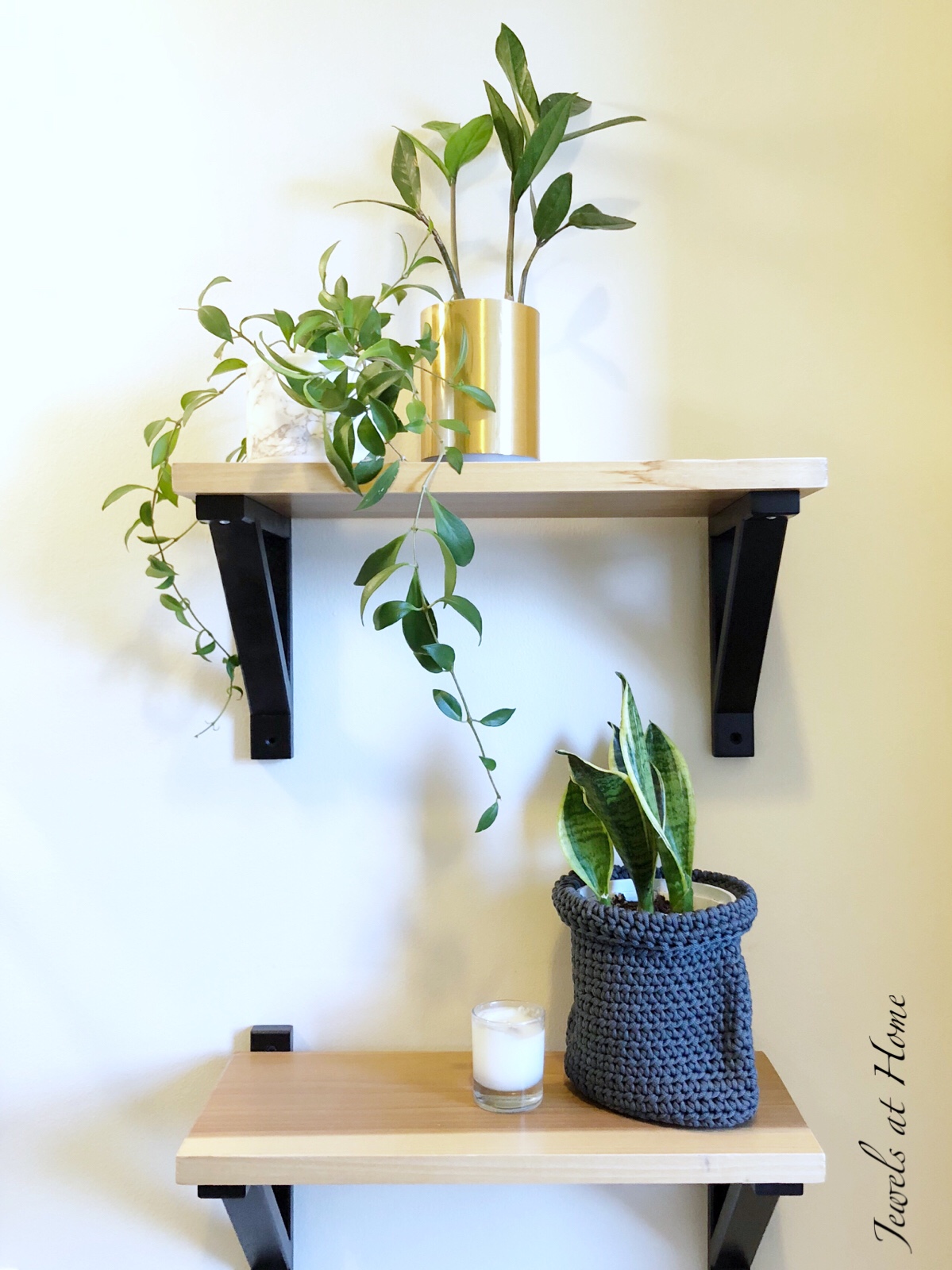 I have used these wall brackets before to hang macrame planters, and I was excited to find them in this black finish, which coordinates with our existing vanity.