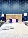 I added two bolster cushions in this really fun print: Barber in powder blue by Premier Prints. The technique for making the bolsters was detailed in the tutorial on sewing pillows. I used two, rather than three, to take attention away from the three separate chairs. I’m thinking of ways to use some more of this fabric on the living room that is right off the foyer.
