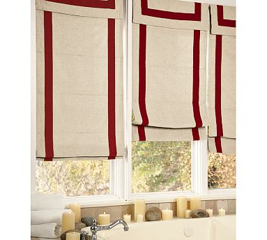 These ribbon border roman shades were sold by Pottery Barn a couple of years ago. I like the use of the wide ribbon and simple pattern. This will be the inspiration for our boys’ shades.